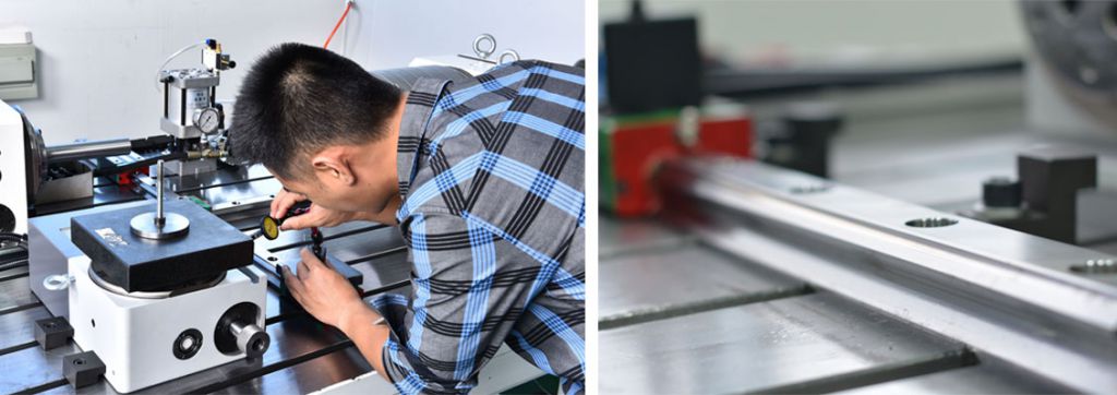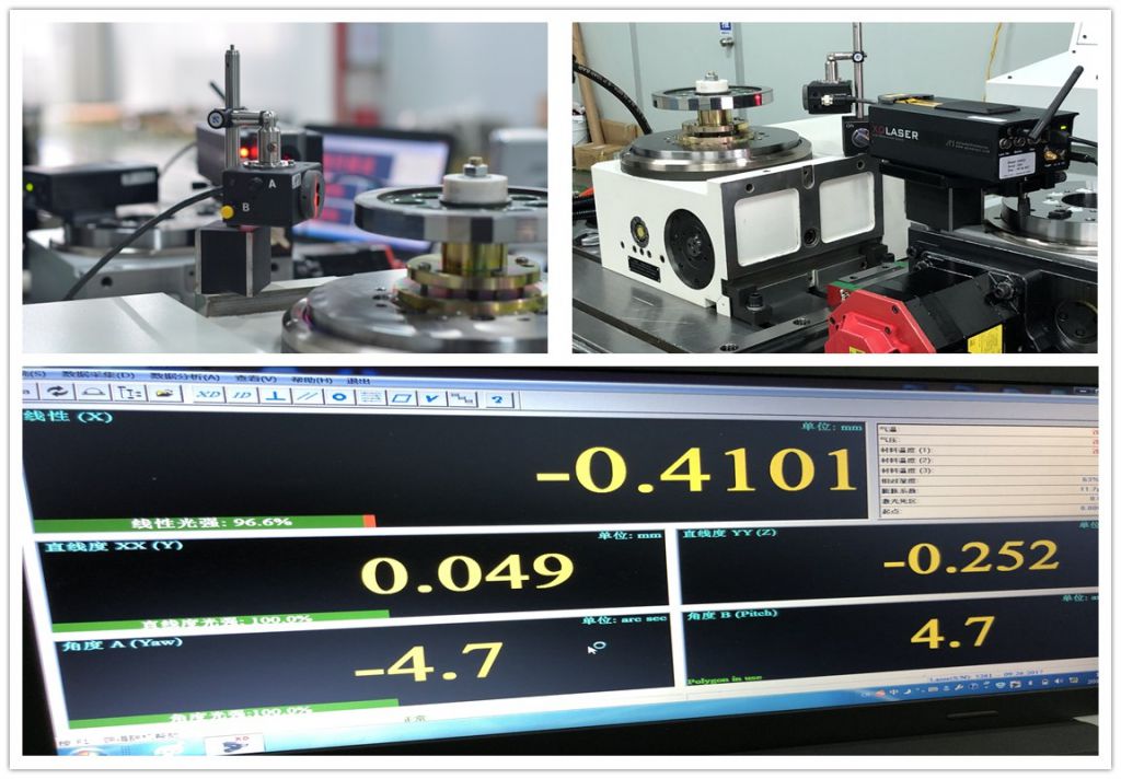 成品質(zhì)量控制(OQC):我們對成品轉(zhuǎn)臺實行全檢,符合國標(biāo)GB/T 17421.2-2016/ISO230-2:2006 機床檢驗通則(數(shù)控軸線的定位精度和重復(fù)定位精度的確定), 采用最先進的CNC機床模擬測試儀,可測試各種操作系統(tǒng)(包括發(fā)那科、西門子、三菱、海德漢、發(fā)格、兄弟等, 也包括華大、華中、廣數(shù)等國產(chǎn)系統(tǒng))下沃迪士轉(zhuǎn)臺的工作狀態(tài)。轉(zhuǎn)臺精度測試均采用鐳射等精密儀器。