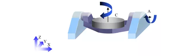 在5軸加工中心的機(jī)械設(shè)計(jì)上,機(jī)床制造商始終堅(jiān)持不懈地致力于開(kāi)發(fā)出新的運(yùn)動(dòng)模式,以滿足各種要求。綜合目前市場(chǎng)上各類五軸機(jī)床,雖然其機(jī)械結(jié)構(gòu)形式多種多樣,但是主要有以下幾種形式:
